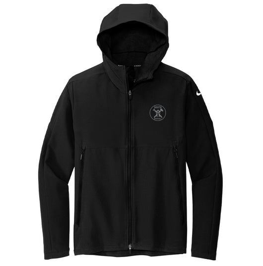 Take your outdoor workouts to the next level. This smooth, water-repellent soft shell has plenty of stretch and features a soft interior. It helps keep the elements out, while effectively managing moisture. The design features a three-panel hood and zippered mesh-lined pockets. The contrast heat transfer Swoosh design trademark is on the left sleeve.